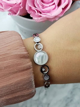 Brățară de oțel pentru femei pietre de perle roz auriu dione