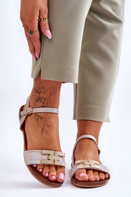 Sandale pentru femei cu o centură decorativă bej rochelle