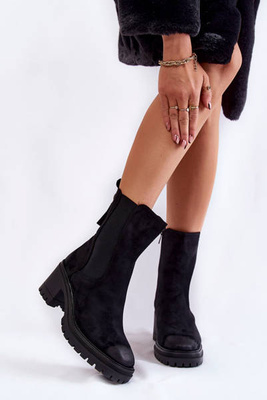 +4Cizme de piele de căprioară pentru femei pe platforma masivă Black Savira