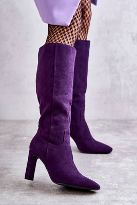 +5Cizme pentru femei pe călcâie până la genunchi violet cu adevărat iubesc