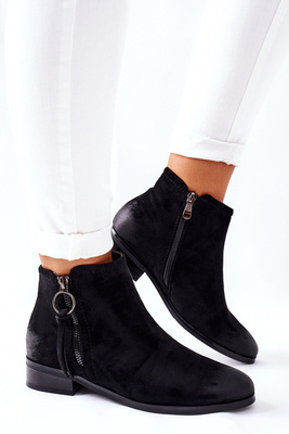 +1Cizme de piele de căprioară pentru femei încălzite negre Janice