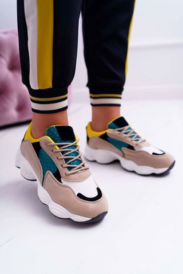 +4Pantofi de piele de căprioară sportivi pentru femei Green Galben acade