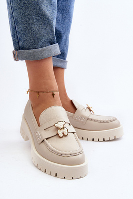 Loafers Masive De Damă Cu Lanț Bej Dataia