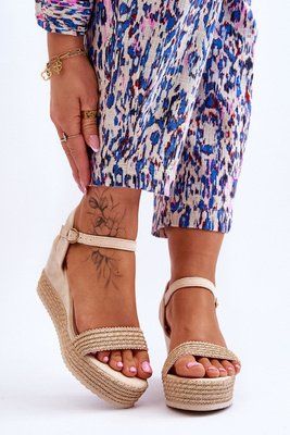 +4Sandale cu pană din piele de căprioară bej elsie