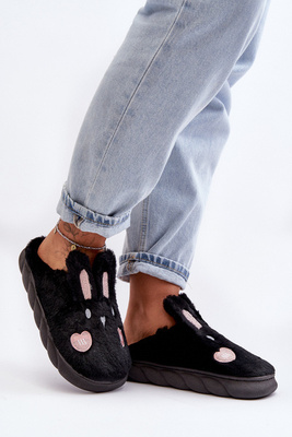 +3Papuci de blană pentru femei cu iepuraș negru Naveritte